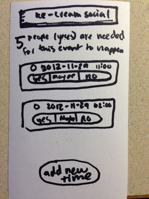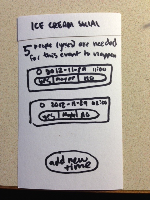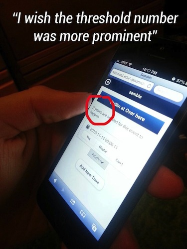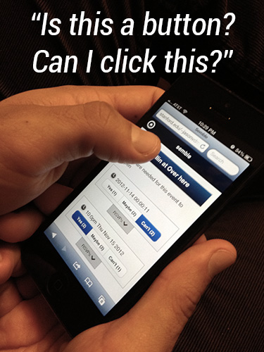 Test #1: This person thought that the title of the event was actually a button that you could click on. The person tried to click on the non-existent button for about 3 seconds and then figured out that it did nothing. The rectangular shape and the gradient could mislead people; however, the other participant did not have this issue.