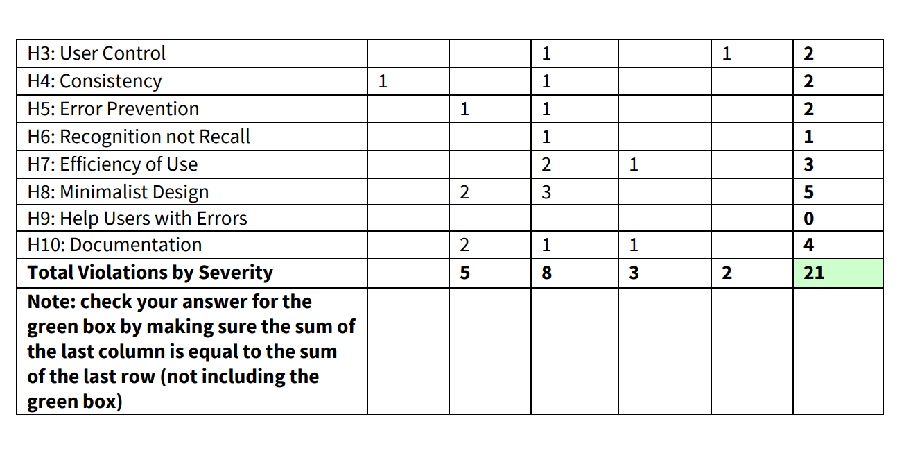 Results from heuristic evaluation of medium fidelity prototype done by section members.