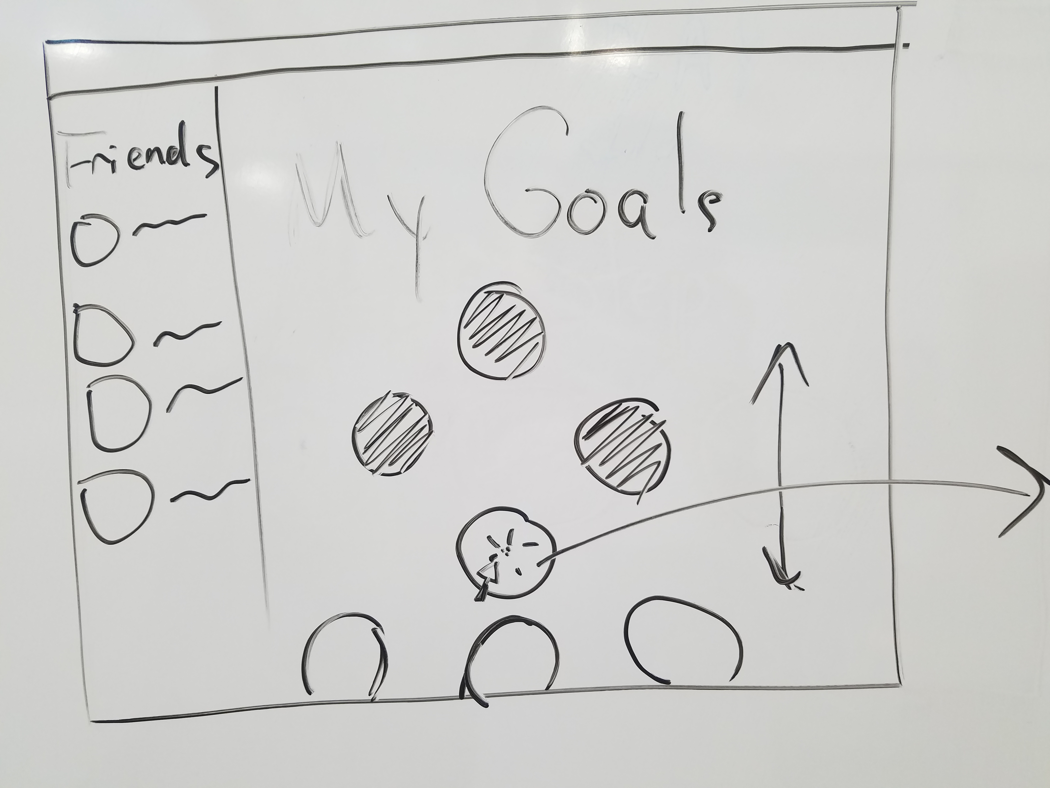 Low fidelity protoype built with post-it notes focused on halfstep's three main tasks: have new goals outlined for you, see progress, and find a friend to work with.