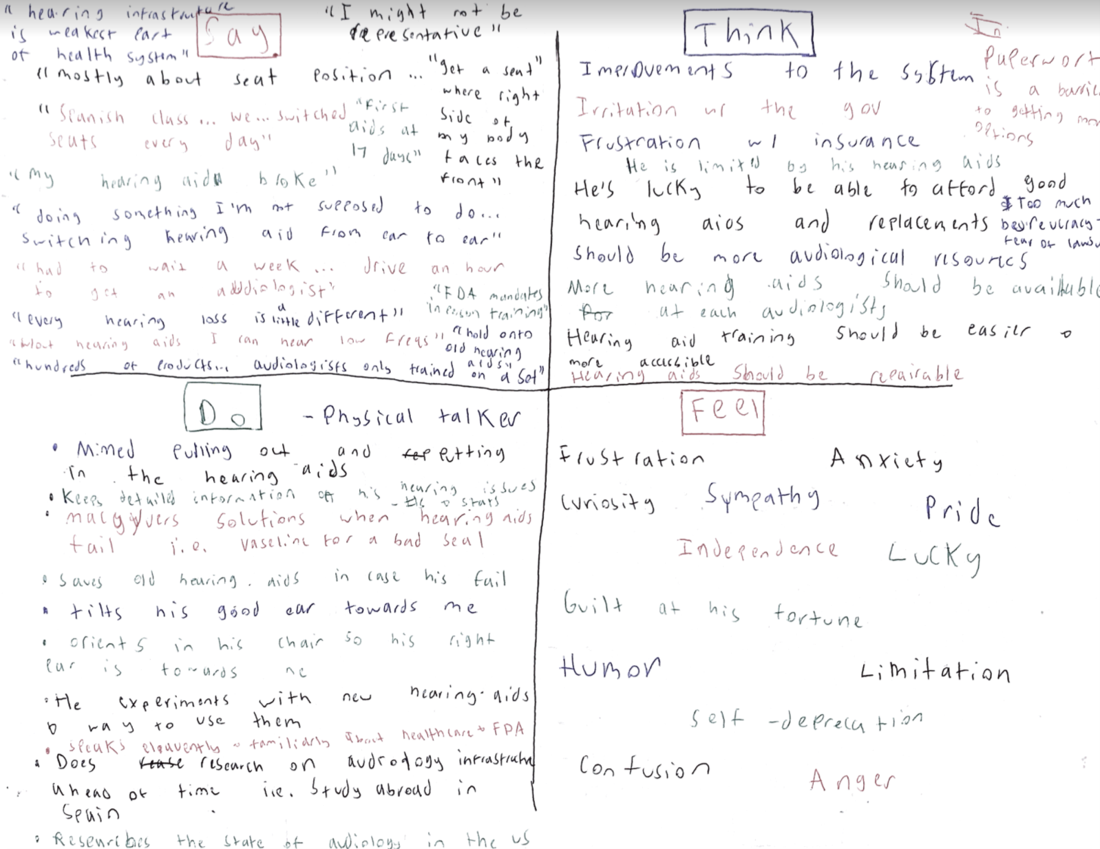 The first step in Audio Reality's journey was identifying what our target group needed. To do this we set up interviews with individuals affected by hearing loss. Our interviewees ranged from people with hearing loss to those who had loved ones experiencing hearing loss.
