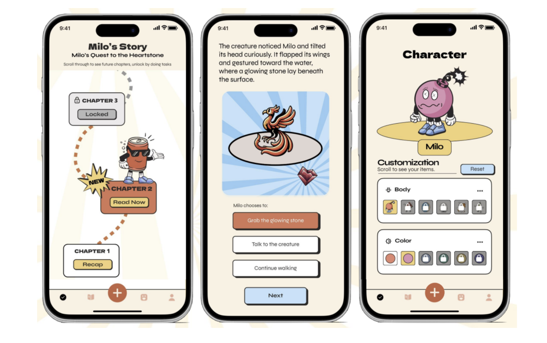 Complete tasks to gain XP, level up, and unlock new chapters. Each chapter unfolds a personalized adventure that brings you closer to your goals.