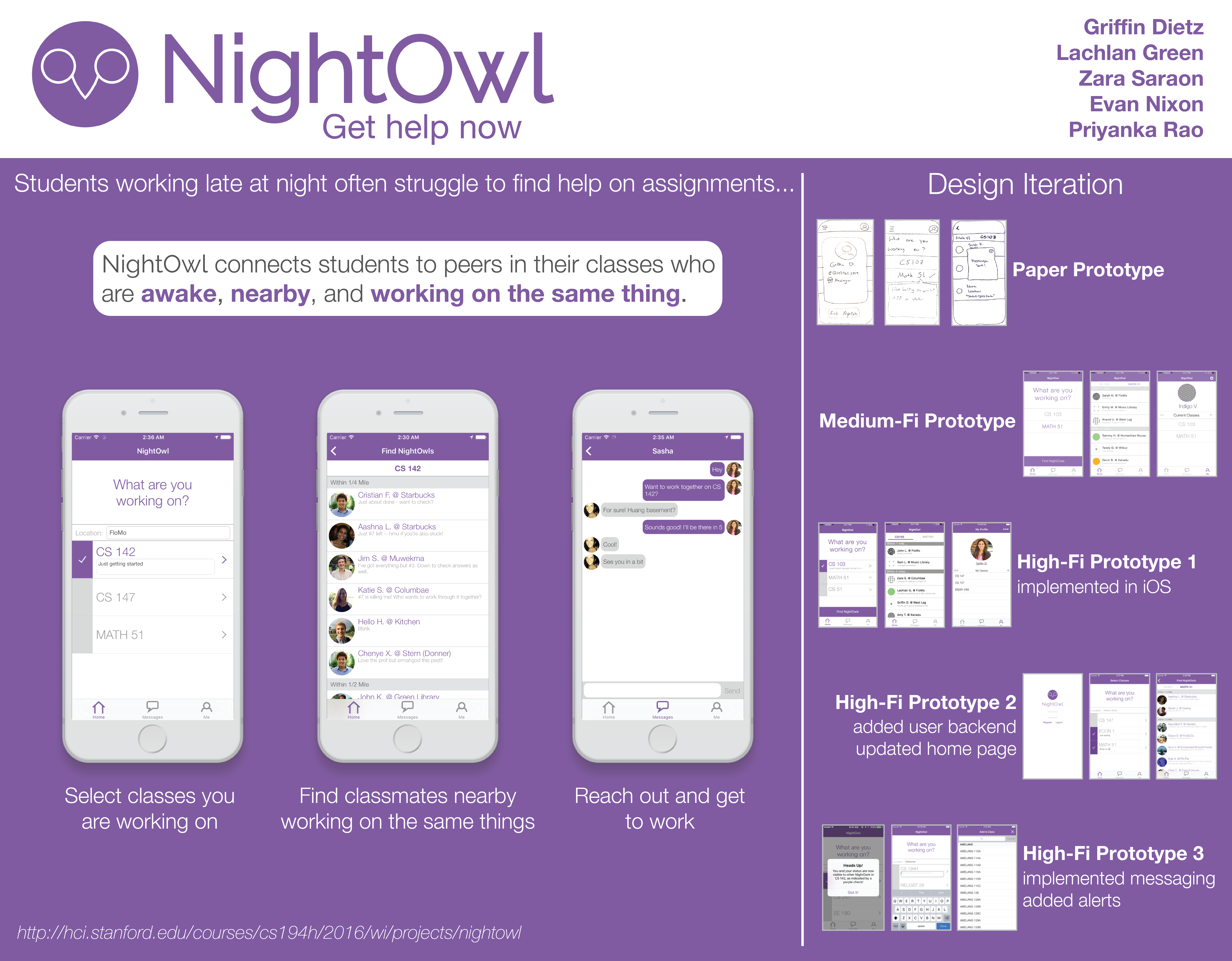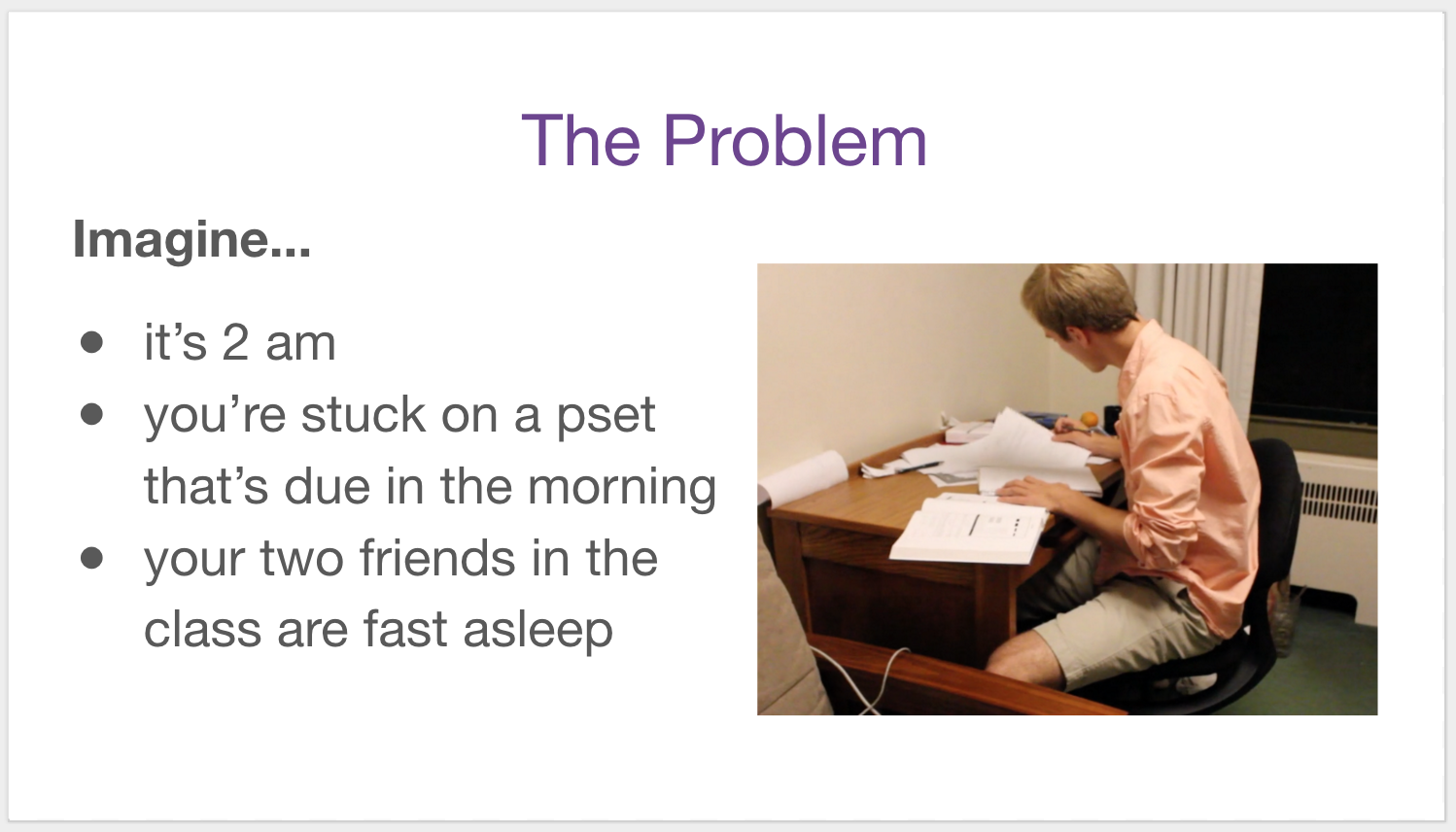 NightOwl solves that by connecting you to other students working on the same assignment at the same time.
